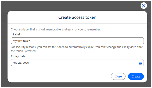 You can view and copy the token only once. Make sure you copy it immediately and store it securely.